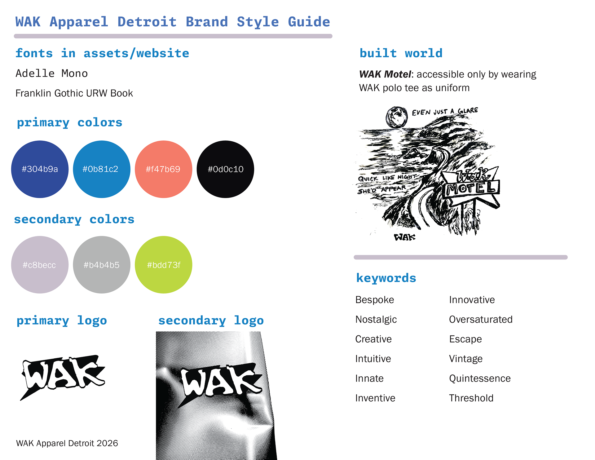 WAK Apparel Detroit originated from risograph prints. Alexandra's illustrations + William's poetry characterizes their collaboration. WAK is the means to any end.